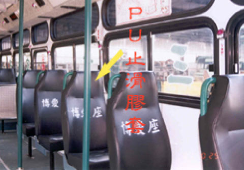 (3)PU材質膠套包住車內扶桿及座椅彎角之不鏽鋼,防護止滑避免乘客摔撞傷。